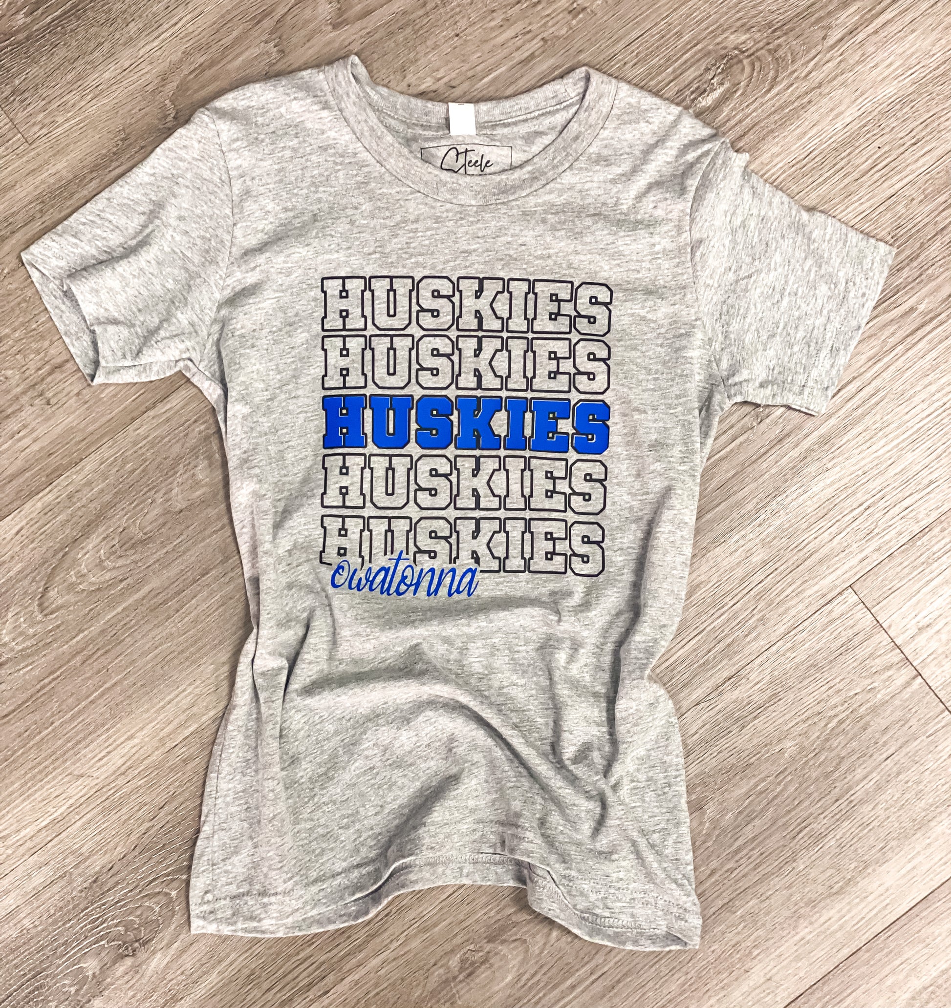 Kids Huskies on Repeat Tee- Heather Grey